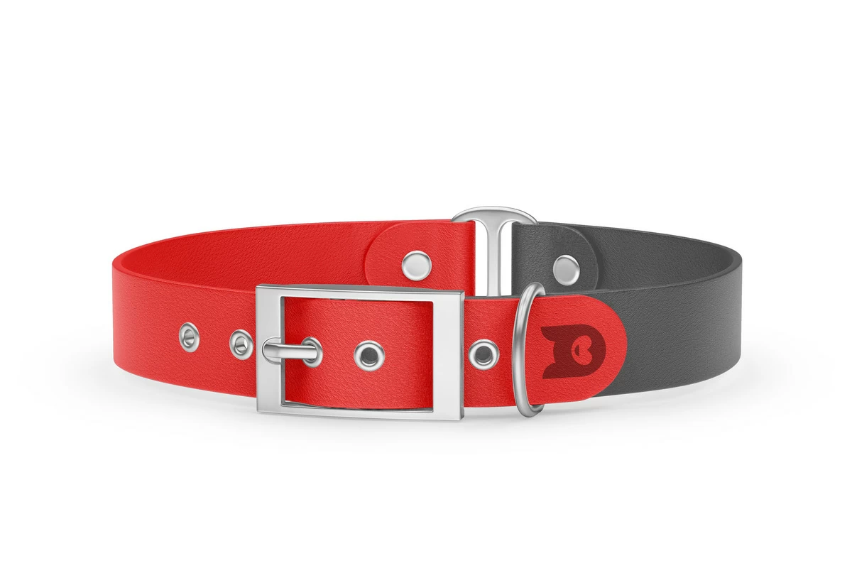 Obojek pro psa Duo - červená / šedá se stříbrnými komponenty