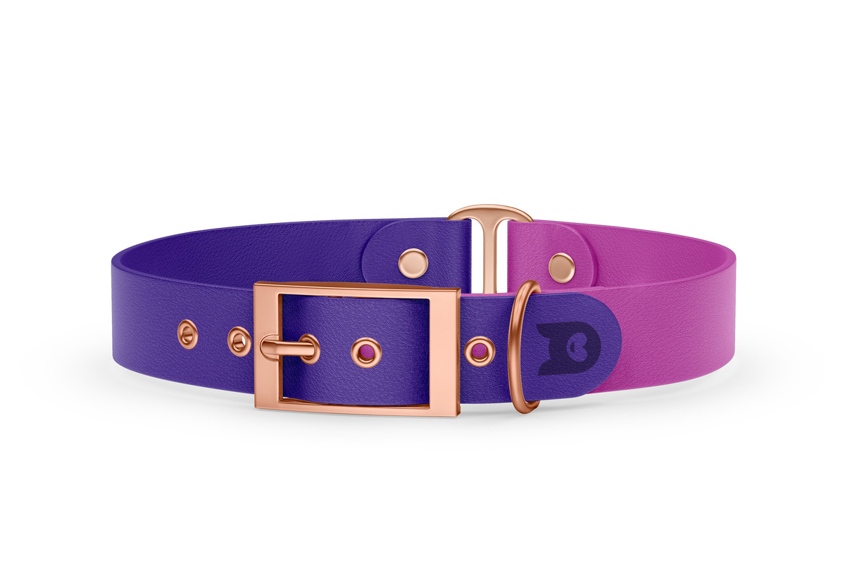Obojek pro psa Duo - fialová / světle fialová s růžově zlatými komponenty