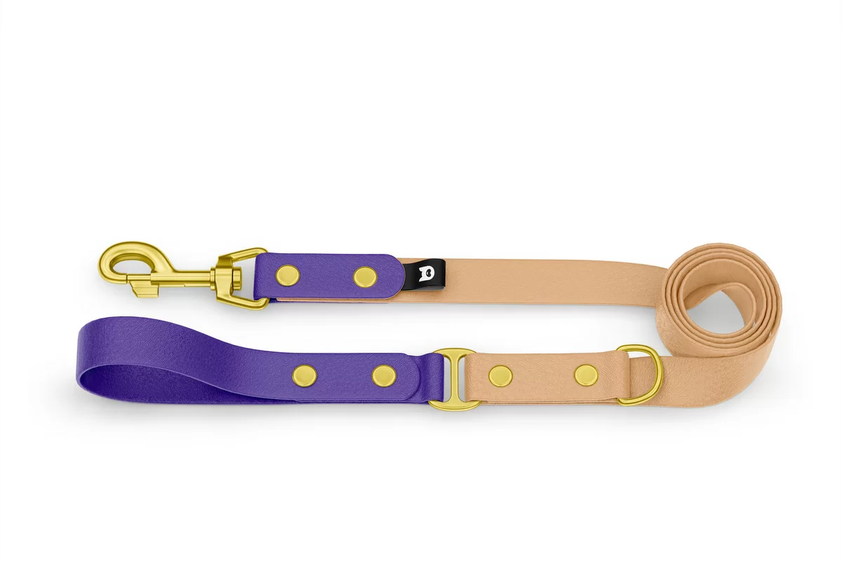 Obojek pro psa Duo - fialová / světle hnědá se zlatými komponenty