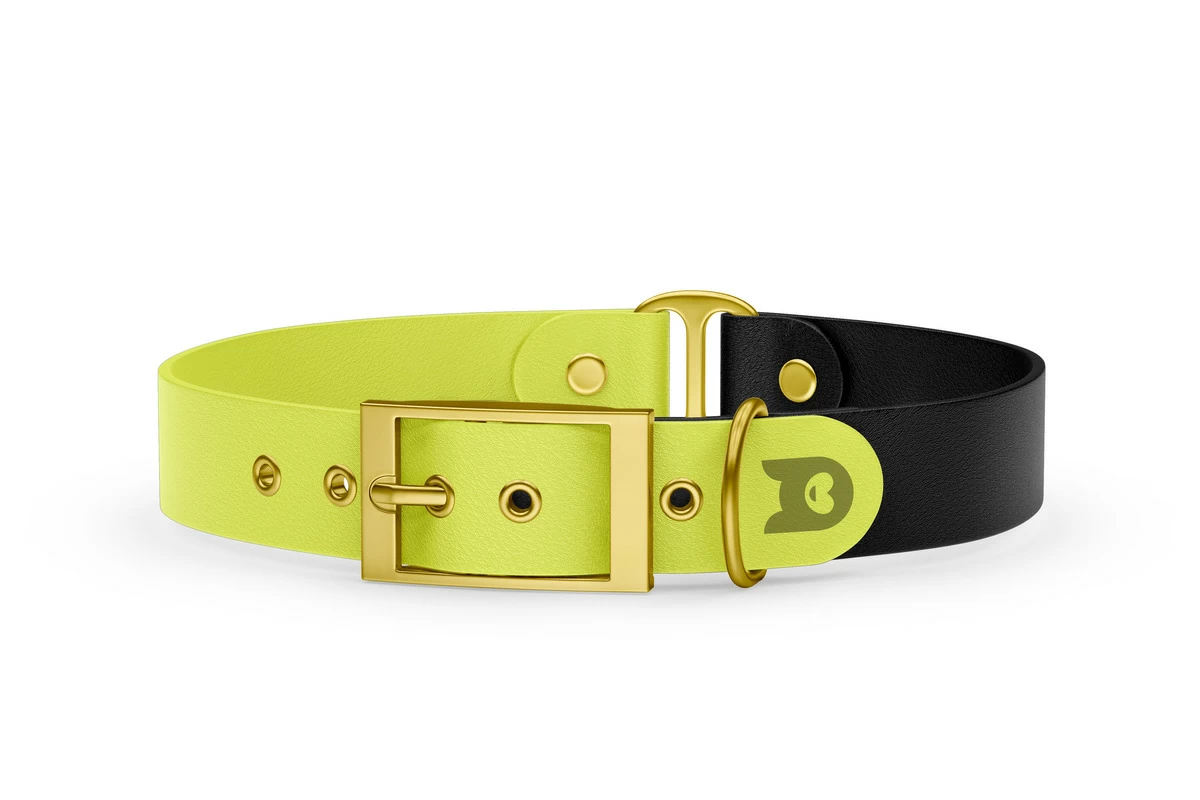 Obojek pro psa Duo - neonově žlutá / černá se zlatými komponenty