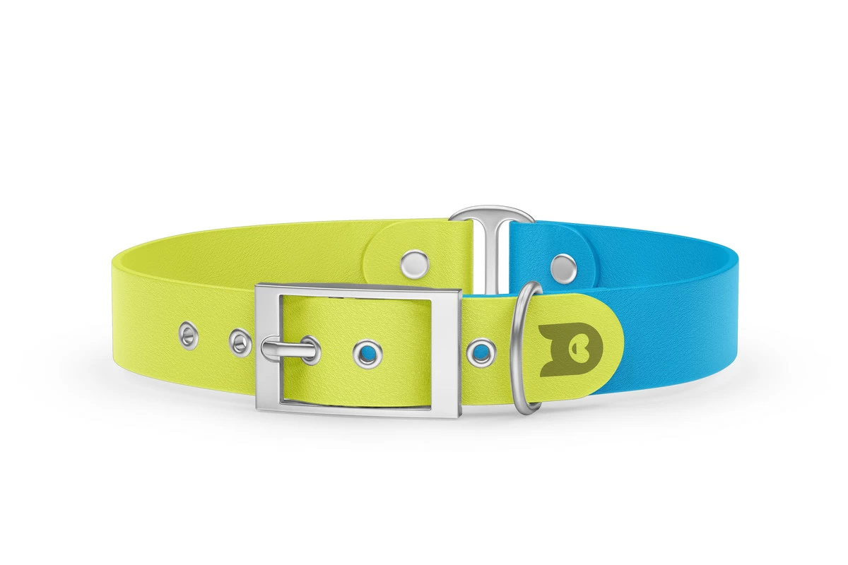 Obojek pro psa Duo - neonově žlutá / světle modrá se stříbrnými komponenty