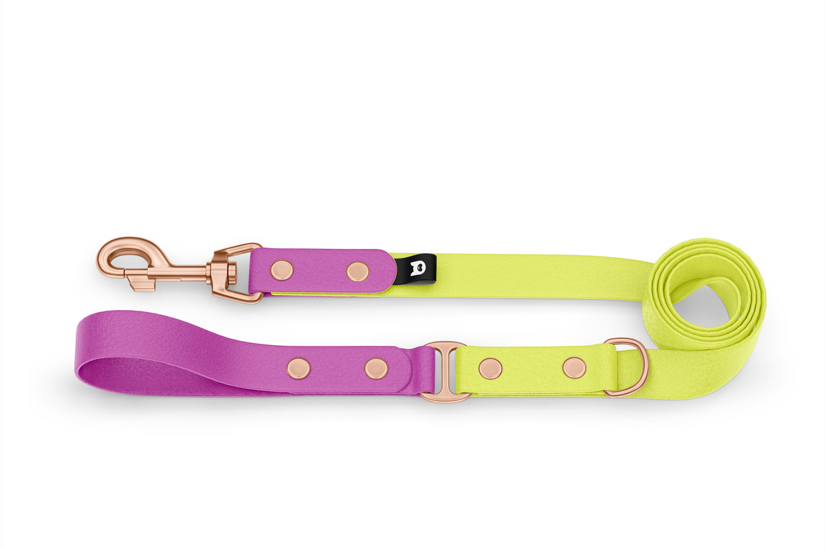 Obojek pro psa Duo - světle fialová / neonově žlutá s růžově zlatými komponenty