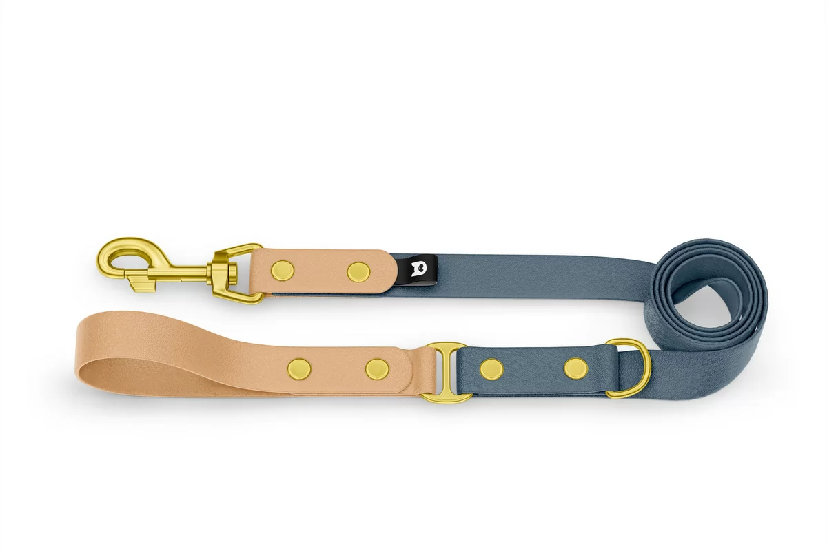 Obojek pro psa Duo - světle hnědá / petrolejová se zlatými komponenty