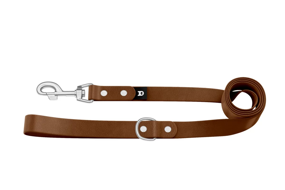 Obojek pro psa Duo - tmavě hnědá / černá se stříbrnými komponenty
