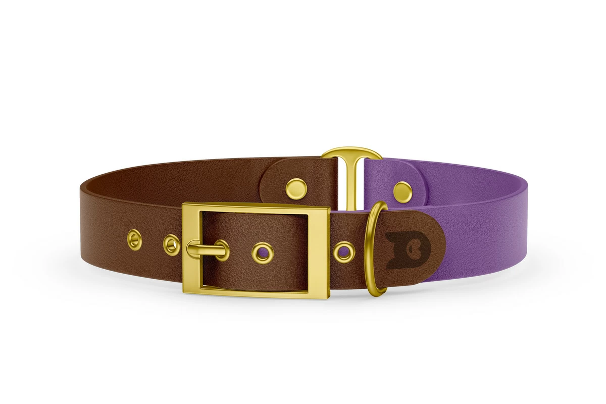 Obojek pro psa Duo - tmavě hnědá / purpurová se zlatými komponenty