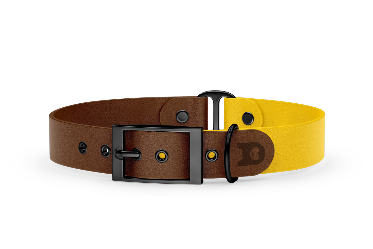Obojek pro psa Duo - tmavě hnědá / žlutá s černými komponenty