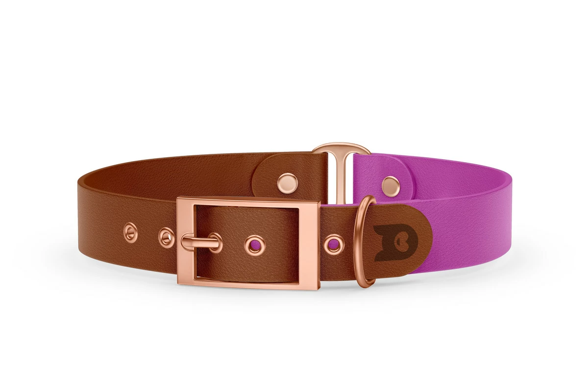 Vodítko pro psa Duo - hnědé / světle fialové s růžově zlatými komponenty