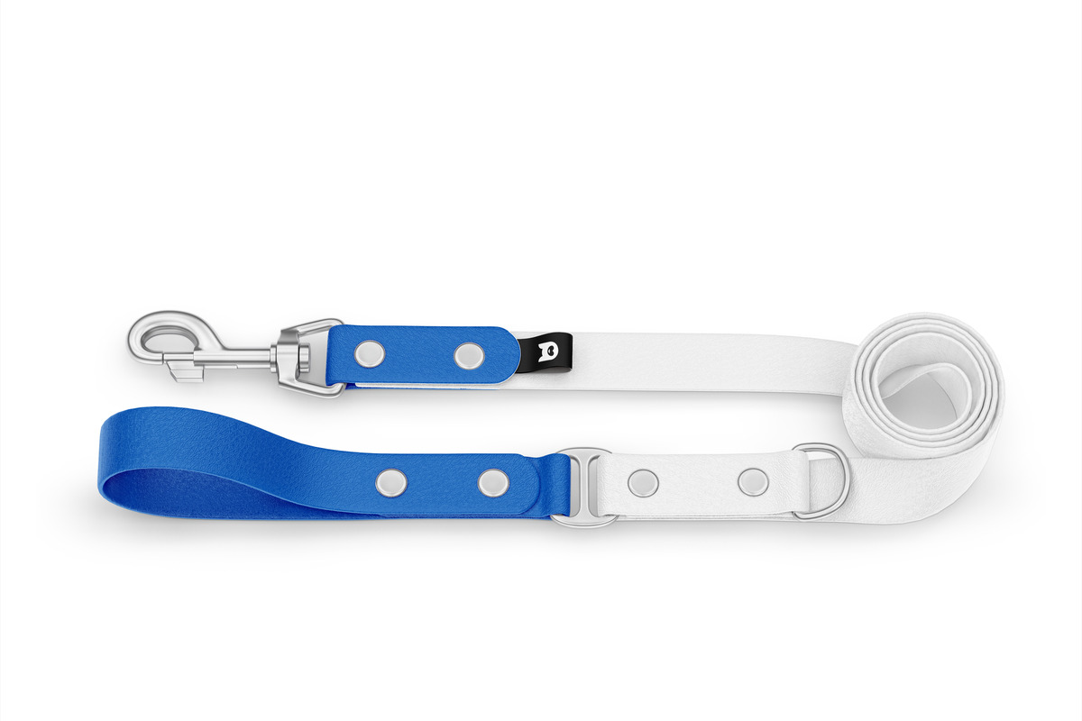 Vodítko pro psa Duo - modré / bílé se stříbrnými komponenty