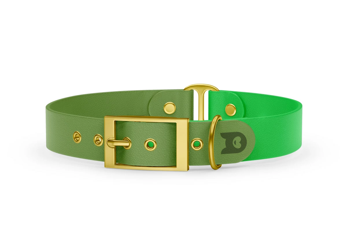 Vodítko pro psa Duo - olivové / neonově zelené se zlatými komponenty