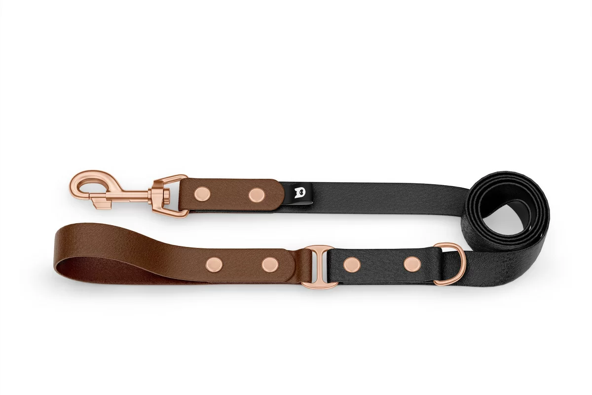 Vodítko pro psa Duo - tmavě hnědé / černé s růžově zlatými komponenty