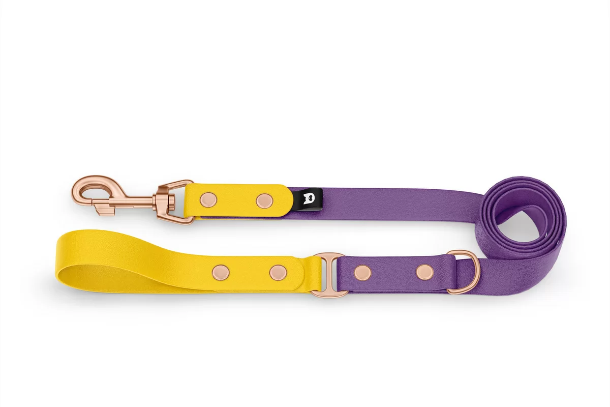 Vodítko pro psa Duo - žluté / purpurové s růžově zlatými komponenty